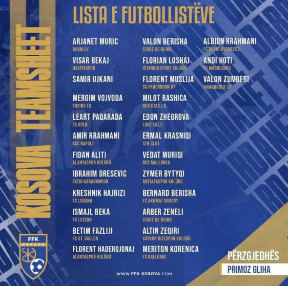 Kosovo se pregătește și pentru duelul cu România, iar adversarii se vor baza la București pe două nume grele din Superliga: Ermal Krasniqi, vedeta lui CFR Cluj, face parte din lot, acolo unde îl regăsim și pe Albion Rrahmani, autorul unei duble pentru Rapid în victoria de la Craiova, scor 5-3.