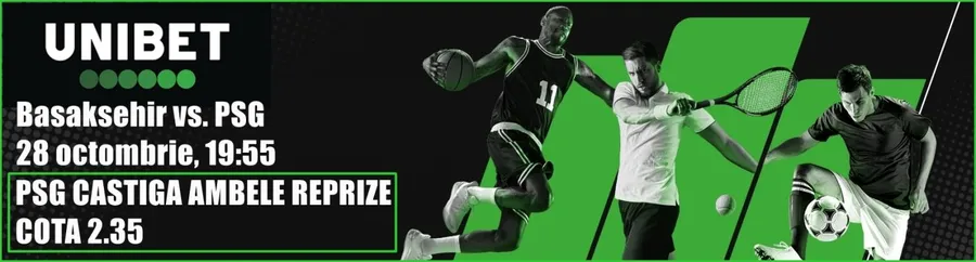 - Basaksehir vs. PSG, miercuri, 28 octombrie, 19:55 – PSG câștigă ambele reprize – COTA 2.35
