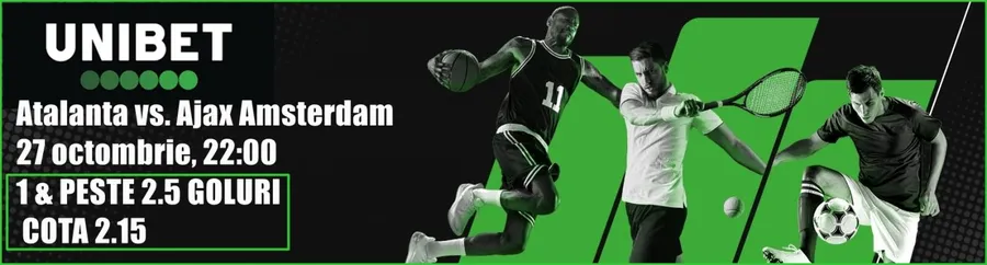 - Atalanta vs. Ajax Amsterdam, marți 27 octombrie, 22:00 – Atalanta câștigă & peste 2.5 goluri COTA 2.10