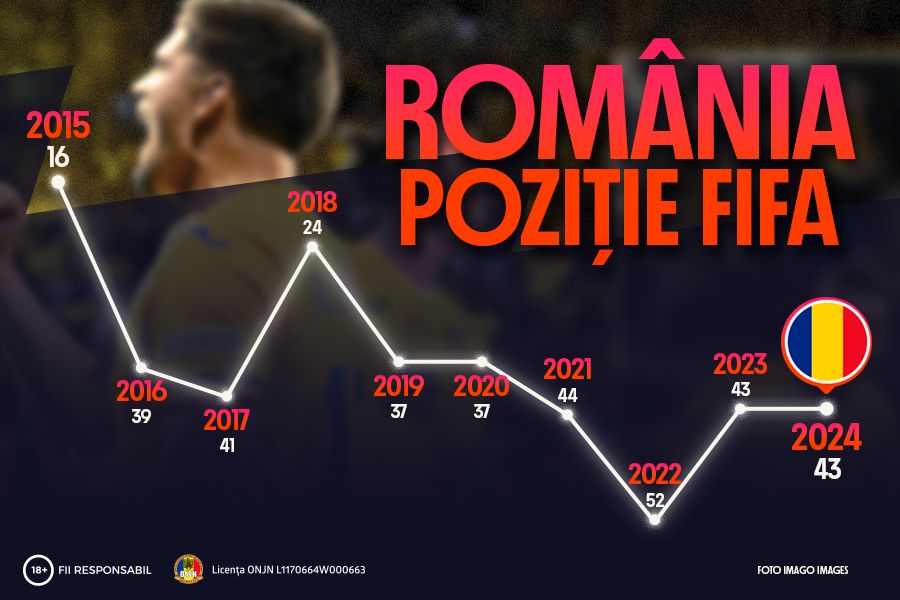 Un clasament unde România ocupă locul 43, după ce în urmă cu doi ani ajunsesem la un minim istoric pe locul 52 între națiunile fotbalistice ale lumii.