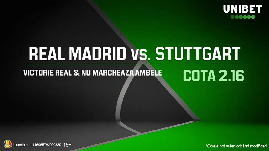 Cotele publicate în acest articol pot suferi modificări în orice moment și sunt preluate din oferta Unibet (Licența nr. L1160657W000330). La acest operator, utilizatorii pot miza pe o gamă uriașă de evenimente, cu sute de selecții pentru fiecare partidă de top, la cote atractive.