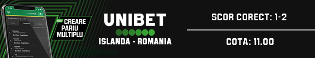 Pe piața Scor Corect la pariuri online Islanda vs. România, o victorie a tricolorilor cu 1-0 este creditată la Unibet cu cota 7.50, iar una cu 2-1 beneficiază de o cotă pe care mulți dintre amatorii de pariuri o vor încerca, 11:00.