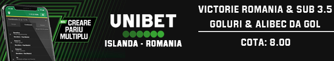 1.45 este cota oferită de bookmakerii casei de pariuri Unibet pentru minim un gol marcat de România în Islanda și 3.40 pentru cel puțin 2 reușite ale tricolorilor.