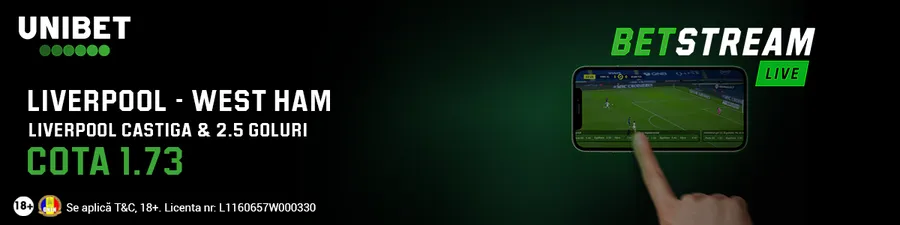 Așadar, utilizatorii pot încerca o selecție din secțiunea Pariuri Combo Unibet: Liverpool câștigă și se vor înscrie peste 2.5 goluri în meci, la o cotă de 1.73.