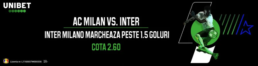La pariuri, Inter este văzută favorită la Unibet să obțină calificarea în finală și are cota 1.60, în timp ce AC Milan are 2.30. Pentru partida de miercuri, trupa lui Pioli are cota 3.15 la victorie, egalul are 3.15, iar succesul celor de la Inter are 2.55. Un pont din oferta Unibet ce poate fi luat în seamă este că Inter Milano va marca peste 1.5 goluri, la cota 2.60. Inter are 18 goluri marcate în ultimele 6 partide și este astfel în formă maximă în fața unei echipe ce are probleme în defensivă.