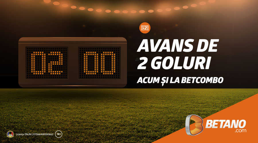 Are echipa pe care ai pariat două goluri avans? Pariul tău este deja câștigător fără a mai trebui să aștepți finalul partidei! Pe Betano, dacă ai plasat un pariu pe victoria unei echipe, iar aceasta are în orice moment un avantaj de două goluri, atunci pariul tău este considerat automat drept unul câștigător, chiar dacă adversarii marchează sau câștigă ulterior meciul! Dacă până acum era valabilă doar la pariurile de tip single, oferta „Avans de 2 Goluri” schimbă regulile jocului: acum poate fi folosită și pentru selecții multiple, dar și BetCombo, opțiune prin care îți poți face un bilet cu mai multe pronosticuri dintr-un singur meci!
