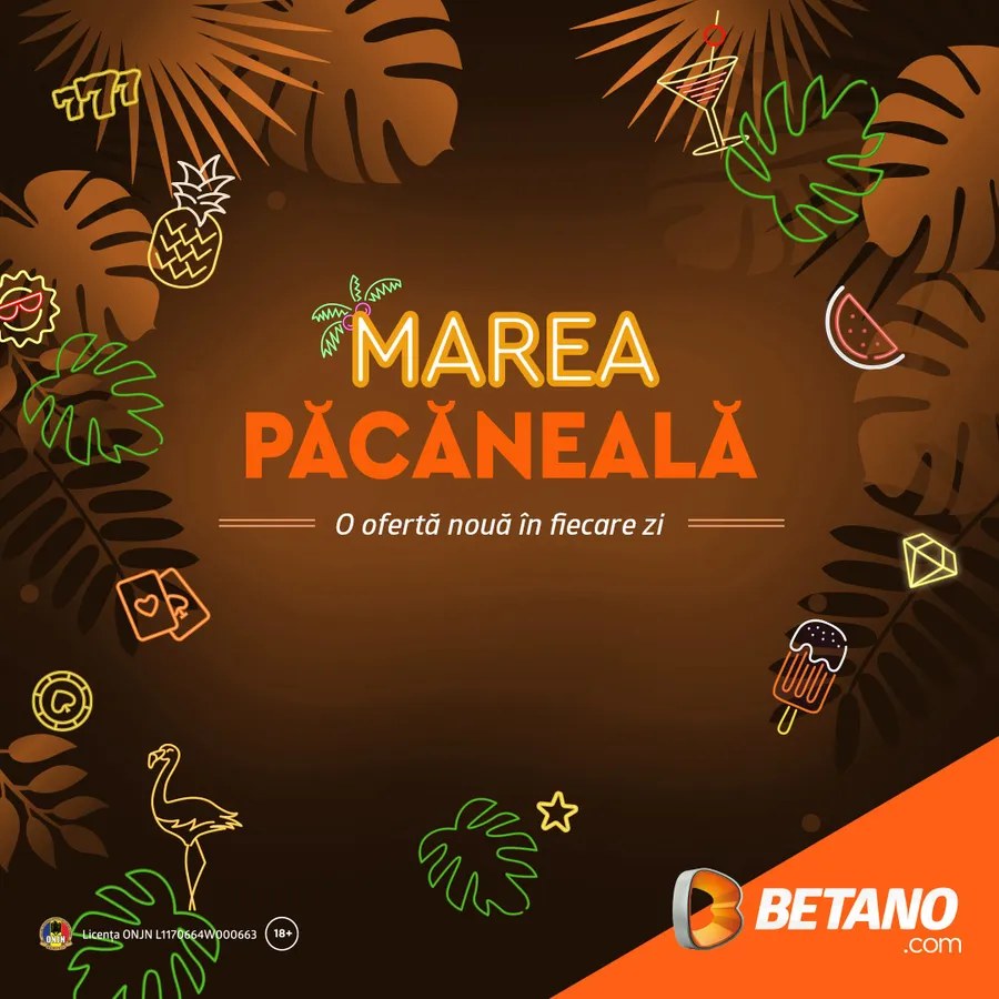 E oficial! S-a dat Restartul și la Marea Păcăneală! Pe lângă oferta completă de fotbal, pe Betano vei găsi și cea mai mare petrecere a verii în Cazinou. Rotiri Gratuite, Jetoane de Aur, Free Bet-uri sau bonusuri te așteaptă la Marea Păcăneală, cu oferte noi în fiecare zi!