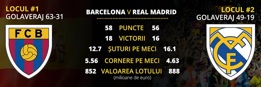 Lupta pentru titlu este pasionantă. Barcelona are un avans de două puncte față de marea rivală Real Madrid, care a pierdut teren important înainte de suspendarea competițiilor.
