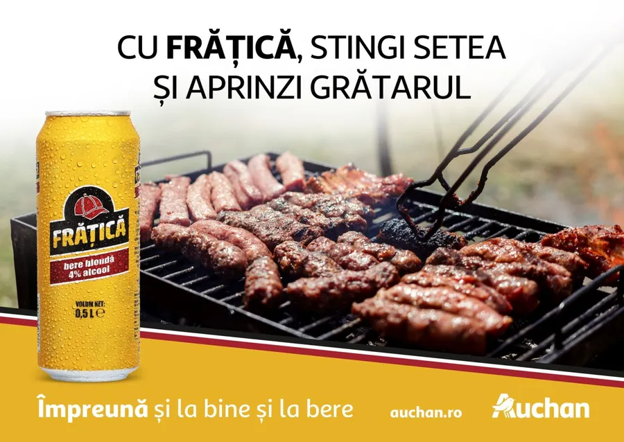 Auchan România lansează, în premieră, Frățică, o bere 100% românească, produsă local și gândită special pentru acele zile în care nu-ți trebuie prea mult ca să fii fericit: un pic de soare, câțiva prieteni și o bere rece.