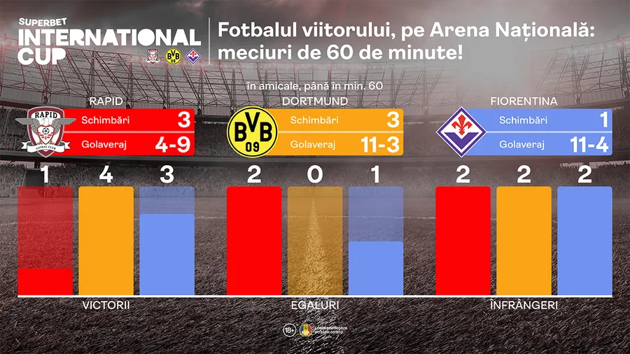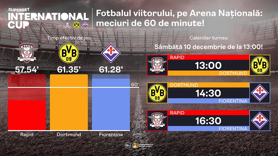 Deci, dincolo de blazonul echipelor din Superbet International Cup, toate sunt foarte relevante pentru prezentul fotbalului. Rapid e o echipă revelație în acest sezon intern, Dortmund și Fiorentina sunt în grupul select al echipelor care au pătruns în fazele decisive ale cupelor europene.