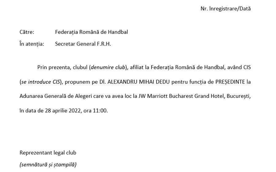 ProSport a aflat că președintele FR de Handbal le-a trimis cluburilor un document cu rugămintea de a-l completa și apoi trimite înapoi.