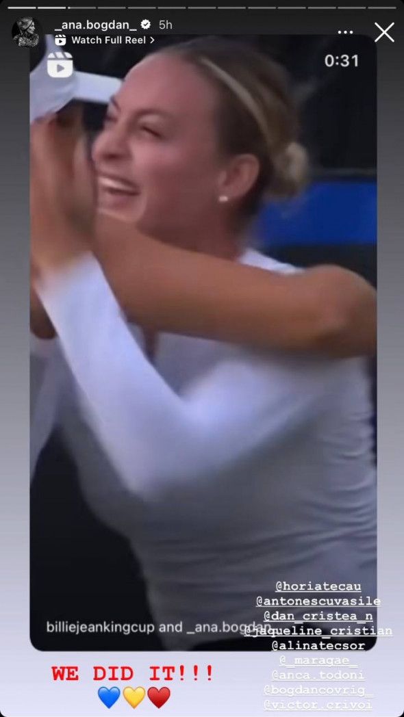 Ana s-a rezumat la trei cuvinte scrise pe rețelele sociale, după succesul istoric al României la Billie Jean King Cup. „We did it” (n.red. – Am reușit)” e mesajul Anei Bogdan.