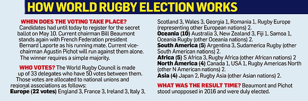Așa procedează și rugby-ul în momentul de față, mai ales că în ultimele săptămîni distanța dintre Beaumont și Pichot practic nu mai există, cei doi fiind în acest moment, conform presei internaționale, cotați cu șanse egale la câștigarea scrutinului din 12 mai. Care va fi online, prin vot electronic de la distanță. Este prima federație care optează pentru acest sistem, dar care nu are legătură cu pandemia de coronavirus. Decizia era luată din urmă cu un an.