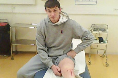Pe patul de spital din Turku, unde a suferit operația de tendinită patelară. Marian a rămas cu o cicatrice care-i va fi prietenă toată viața