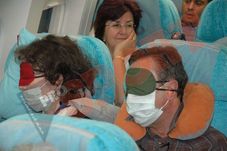 Dar începe adevărata aventură de zece ore! Un Airbus de lungimea unui teren de handbal și de lățimea Autostrăzii Soarelui pare gazda perfectă a unei petreceri în pijamale cu miros de friptură de vită cu gust de oaie. Papucii gen bunica sunt probați imediat de atleții români, pledurile colorate menite să îi protejeze de crivățul aerului condiționat înviorează atmosfera, iar ochelarii contra lumină sunt lăsați pentru dimineață. În tot acest timp, Esthera mai recepționează un cot de la o însoțitoare de zbor frumoasă, dar zeloasă, Marius rămâne impresionat de tinerele coreence ce își îngrijesc dantura (se ridică și se spală pe dinți), iar pe Kemal parcă l-a faultat Gattuso. „Mie mi s-au umflat gleznele deja de atâta stat”, confirmă și Ionescu. Mai face niște ture pe culoar, se mai lasă prins într-o ambuscadă coreeană și timpul se scurge. Cu James Brown la căști sau cu pelicula Afacerea Pelican sub nas nici nu realizezi când ești deasupra vârfului de care alpiniștii se agață cu sufletul – Himalaya (8.848 m) – sau când Beijingul te privește de la 10.000 m. „Prepare for landing…” vine ca o compresă rece…
