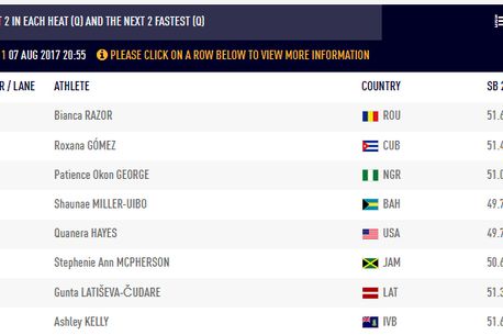 Bianca Răzor și-a asigurat prezența în semifinalele probei de 400 m, duminică, în reuniunea de dimineață a Campionatului Mondial de Atletism de la Londra, cu al 15-lea rezultat și un timp de 51,64 secunde.