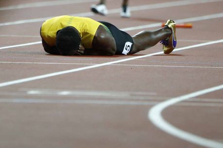 Se pleacă tare. Ca din pușcă. Se merge cap la cap. Cu avans pentru Statele Unite și Marea Britanie. Se intră pe turnantă. Urmează ultimul schimb. Adrenalina pompează în vene! Stadionul huruie! Camerele TV par că transpiră. Jamaica schimbă a treia. Dar ce emoții? Bățul e la Usain! Britanicul Mitchell-Blake și americanul Coleman au un pas în fața lui Insane, dar Bolt amenință! Își ia rolul în serios. Compasul îl ajută! Dar face doar patru pași. Fața-i schimonosită de durere. Calcă parcă pe vârfuri de sulițe și se prăbușește. Nu i se poate întâmpla tocmai lui… Își atinge instinctiv cvadricepsul piciorului stâng…