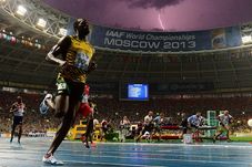 UPDATE: 16:20 POZA MONDIALULUI  O armată de fotoreporteri se luptă să prindă la Moscova cele mai impresionante imagini. De la groapa cu nisip și ștacheta de la înălțime, până la liniile de sosire pe care sportivii încheie cursa fie  cu chipul descompus de durere, fie cu un zâmbet larg, artiștii fotografi surprind cele mai interesante amănunte. Aseară, la finala de la 100m câștigată de „Fulgerul” Usain Bolt (9,77), imediat după finiș, francezul Olivier Morin de la AFP a imortalizat o secevență magnifică. În același cadru, Morin a surprins atât atitudinea de campion degajată de Bolt – cu pleiada de adversari rămasă pe fundal -, cât și fulgerul care a brăzdat cerul Moscovei.