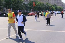 În ciuda căldurii, circa o sută de bucureșteni au participat ieri la un cros pe distanța a 3 kilometri, în jurul Palatului Parlamentului. La start s-au aliniat parlamentari, printre aceștia numărându-se și Bogdan Olteanu, fostul președinte al Camerei Deputaților, ziariști – Clara Ilie (Libertatea), Răzvan Spiridon (Men’s Health), oameni de sport, precum și foarte mulți copii. Scopul acțiunii a fost să atragă atenția românilor că mișcarea reprezintă cea mai bună modalitate de menținere a sănătății. Iar dacă majoritatea s-a conformat, parcurgând traseul fără să urmărească neapărat victoria, au mai fost și unele excepții. Doi burtoși au dorit să dovedească că în alergare trebuie să-ți folosești și mintea… Așa că au străbătut distanța dintre start și sosire în sens contrar celorlalți concurenți, adică parcurgând circa 300 de metri… Iar apoi s-au lăudat pe la posturile tv cu isprava lor.