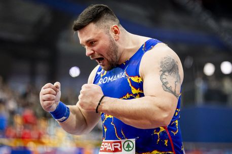 Atletul român a realizat performanța chiar la ultima aruncare, iar cei 21,27 de metri la care a trimis bila reprezintă un nou record național.