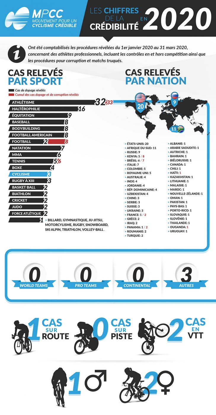 Un raport al „Mișcării pentru un Ciclism Credibil” detaliază cazurile de dopaj și corupție din 1 ianuarie până la 31 martie, înainte de pandemia de coronavirus.