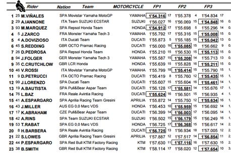 Ordinea plecării în cursa MotoGP, conform timpilor din antrenamente: