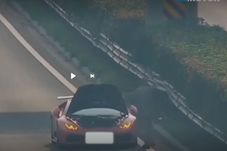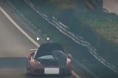 În imagini se poate vedea cum șoferul, după ce pune mașina pe avarii, se dă jos din Lamborghini și începe să le facă semne disperate celor din spate pentru a încetini. Mai apoi, când își dă seama de pericolul la care se expune, bărbatul traversează autostrada pe partea opusă.