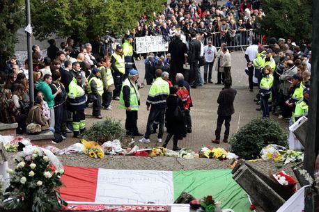 Toată Italia și-a luat adio astăzi de la copilul teribil al sporturilor cu motor, Marco Simoncelli, decedat duminică în timpul unui accident groaznic pe circuitul de la Sepang. Familie, prieteni, vecini, cunoștințe, oameni care nu l-au cunoscut niciodată au asistat la funeraliile fostului motociclist, al cărui trup a fost adus la biserică în jurul orei 15:50.