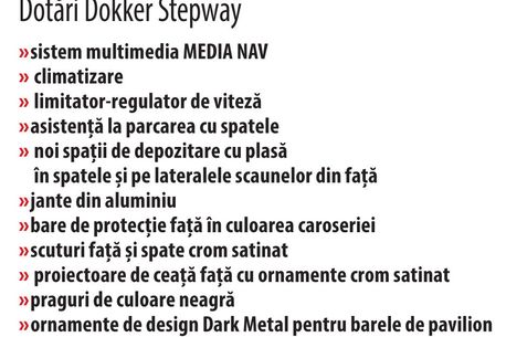 Dokker Stepway, disponibilă în trei dintre cele 4 variante de motorizare ale Dacia Dokker, lansate în 2012 (lipsește motorizarea 1.6 MPI 85 CP), are o dublă garanție de 3 ani / 100.000 km. Mașina multi-funcțională a familiei și adaptabilă propusă de Dacia la Paris este un automobil mai pregătit pentru a face față provocărilor drumului, dar și ale pieței.