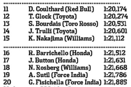 Alături de Heikki, pe prima linie a grilei de start nu se va alinia astăzi vreunul dintre pretendenții la titlul mondial, ci australianul Mark Webber (Red Bull). Iar dacă Raikkonen (Ferrari) și Hamilton (McLaren) păstrează șanse la victorie, urmând a pleca în cursă de pe 3, respectiv de pe 4, pozițiile ocupate la start de Massa (Ferrari / 9) și Kubica (BMW / 10) nu îi avantajează. E drept, amândoi au și ceva scuze. Primul s-a dat cu mașina de parapet în testele de vineri, iar polonezul nici n-a rulat în ultima parte a calificărilor din cauza unor probleme tehnice la monopost.