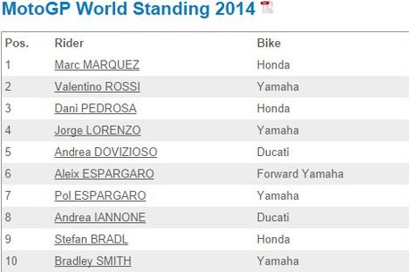 Clasamentul general în MotoGP cu trei etape înainte de final