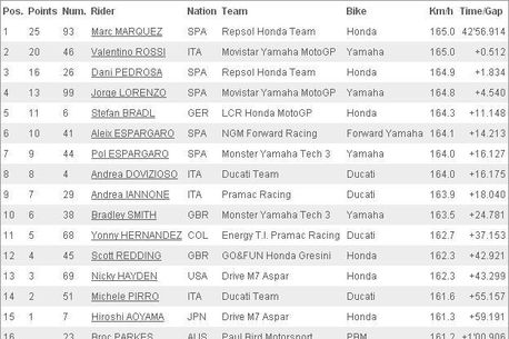 Clasamentul final al cursei MotoGP din Catalunya