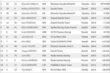 Amânată în două rânduri din cauza apariției precipitațiilor, cursa MotoGP de la Losail a fost un adevărat spectacol pe circuit. Într-un amestec de frustrare, concentrare și inspirație, piloții au forțat și rezultatul a fost pe măsură. Maverick Vinales a reușit să câștige prima cursă a sezonului 2017 din MotoGP, prima apariție pentru el pe motocicleta Yamaha M1, după ce a dus o luptă interesantă cu Andrea Dovizioso. Pilotul Ducati a condus și el cursa în multe momente, însă nu a putut face față asaltului de final al lui Vinales. „Sunt mulțumit de treaba bună pe care am făcut-o, mă simt atât de fericit încât parcă sunt într-un vis. Pole position și victorie cu Yamaha, ce pot cere mai mult?„, a spus spaniolul la final.