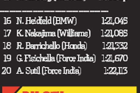 Din spatele celor doi piloți de la McLaren va lua startul rivalul Felipe Massa (Ferrari). Raikkonen, în schimb, a fost întrecut de Kubica și, surpriză, Glock!