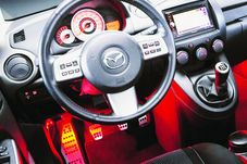 Mazda2 se regăsesc și în habitaclu. Designul cu tentă sportivă se