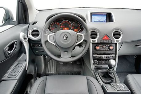 La interior, Koleos oferă un spațiu generos pentru locurile din față, spațiu creat îndeosebi de distanța până la plafon. Poziția de conducere supraînălțată va permite o vizibilitate excepțională. Habitaclul este foarte luminos datorită plafonului panoramic ce dezvăluie o impresionantă suprafață transparent. De asemenea, portbagajul are un volum de 450 de litri. Koleos este disponibil în două variante de motorizare și în trei variante de echipare: Expression, Dynamique și Privilege. În varianta diesel, mașina este disponibilă atât cu 150 CP, cât și cu 175 CP. Comercializat atât în versiunea 4×2, cât și 4×4, motorul dCi 150 CP este asociat unei cutii de viteze manuale sau automată în șase trepte. Motorul pe benzină dezvoltă o putere de 170 CP și un cuplu de 226 Nm.