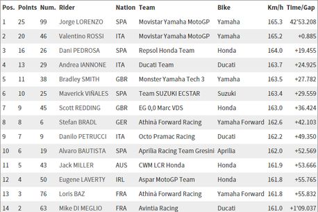 Lorenzo nu i-a lăsat nicio șansă lui Rossi, dar italianul rămâne lider la general