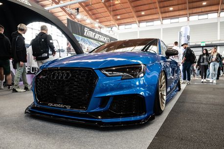 Se afla la bordul unui Audi, după cum reiese din video, dar în textul postării a scris: „Avem vreun Honda care să poată merge cu 300 km/h cu o singură mână?”.