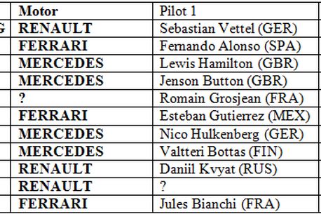 • La capitolul piloți, vor exista cel puțin doi debutanți în actualul sezon (Kevin Magnussen – McLaren și Daniil Kvyat – Toro Rosso)