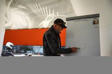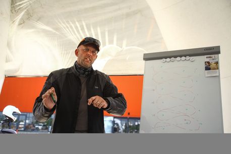 Ședințele de training conduse de Matei Albulescu în cadrul RideX încep, de fiecare dată, cu partea teoretică în care „eleviilor” li se explică pe tablă exercițiile pe care le vor avea de executat din șaua motocicletei. Foto: Mihai Barbu