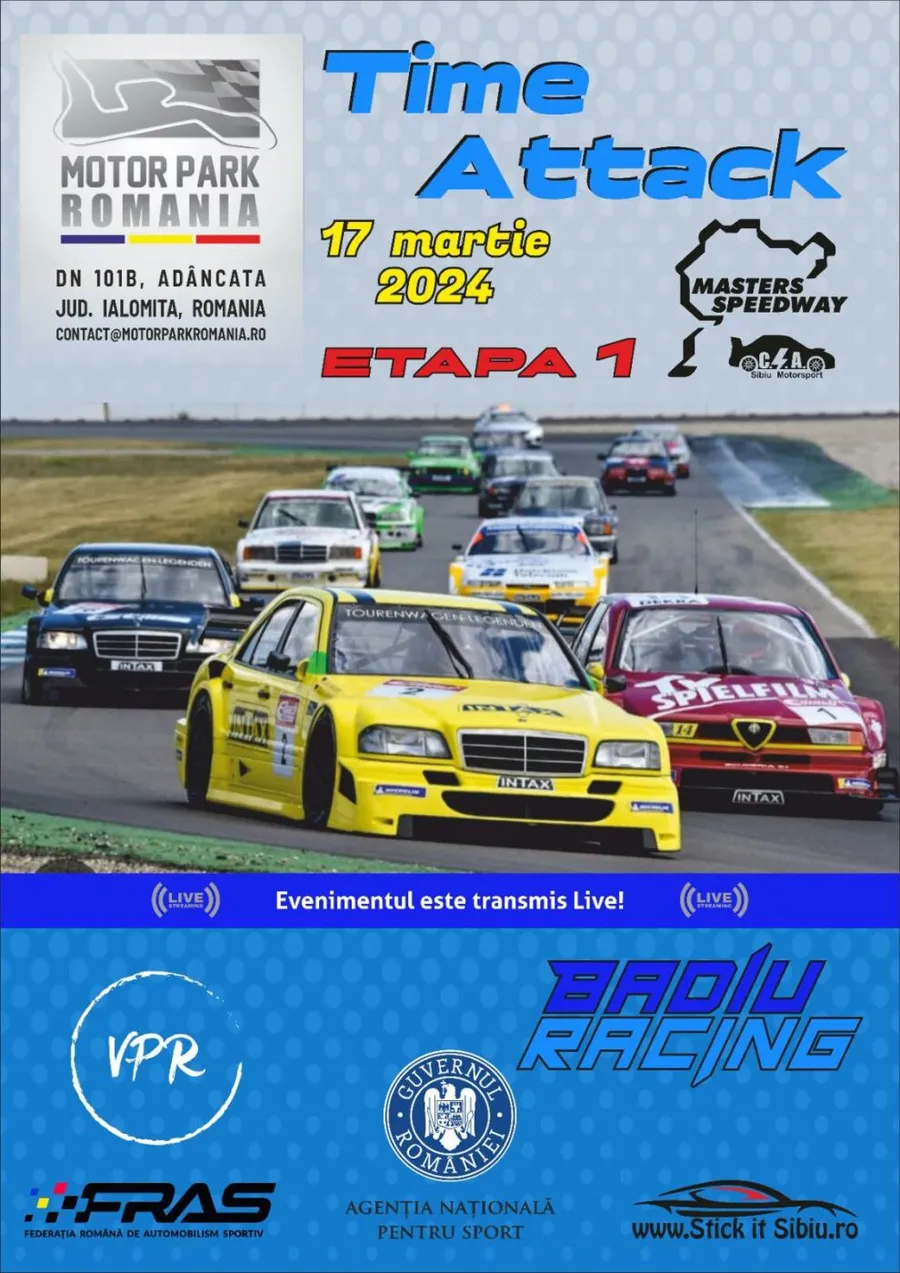 Competiția de time attack se va desfășura exclusiv pe circuit în acest sezon, cu un total de 6 etape, dintre care două pe MotorPark și patru pe Transilvania Motor Ring. Organizată de CSA Sibiu Motorsport în parteneriat cu Raul Badiu Racing, runda inaugurală de duminică se anunță una interesantă datorită diversității de pe lista de start, dar și a mașinilor prezente. În total, la Etapa 1 Time Attack powered by Anadolu Automobil Rom-Green Transport vor concura un total de 50 de piloți.