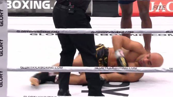 Plazibat a încasat o lovitură și este numărat după 30 de secunde. A fost trimis la podea cu un low-low kick, dar s-a ridicat.