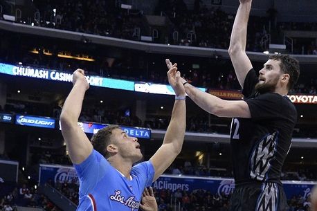 Ambele echipe au evoluat în tricouri cu mânecă lungă, ce par noul trend din NBA. Love (dreapta) l-a dominat pe Blake Griffin (32 de puncte, 10 recuperări) în meciul de aseară