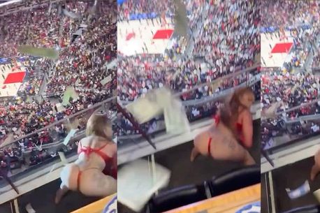 Tânăra a renunțat la inhibiții și a dansat lasciv în fața miilor de spectatori prezenți pe arenă, iar fanii prezenți în zona respectivă au aruncat cu bani peste femeia care dansa în lenjerie intimă.
