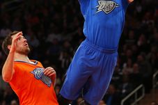 După Kobe Bryant, ziua de Crăciun din NBA a avut un alt mare absent. E vorba despre Carmelo Anthony, jucătorul lui New York Knicks, care s-a lovit la gleznă în meciul de marți cu Orlando Magic. Iar new-yorkezii au avut probleme mari în meciul de aseară cu Oklahoma City Thunder. Fără defensivă și cu o ofensivă apatică, Knicks a fost spulberată de vitalitatea și viteza atacurilor lui Thunder, pierzând cu 123-94! Kevin Durant (29 de puncte, 7 recuperări, 6 pase decisive) a fost cel mai bun marcator al lui Thunder, în timp ce Russell Westbrook (14 puncte, 13 recuperări, 10 assisturi) a reușit un triple-double. Cu toate acestea, Thunder (23-5) rămâne pe 2 în Vest, după Trail Blazers, în timp ce Knicks (9-19) e pe 11 în Est.