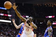 Shumpert (dreapta) nu a putut să îl oprească pe James Harden (în alb), care a avut o evoluție excelentă