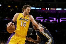 Gasol (în galben) a fost cel mai bun marcator al lui Lakers în meciul cu Jazz