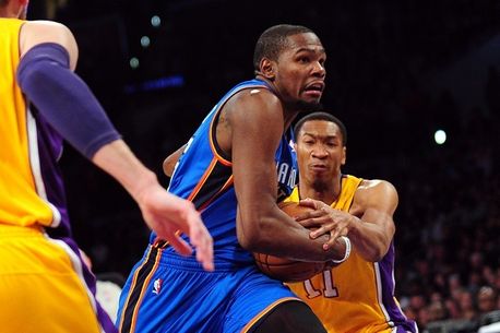 Durant a fost forțat de antrenorul Scott Brooks, jucând 42 din cele 48 de minute ale meciului cu Lakers