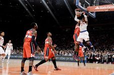 Joacă Knicks prea bine mult prea devreme? Deja există contestatari ai echipei care a câștigat aseară, scor 120-99 cu Washington Wizards, al 13-lea meci consecutiv în NBA. O performanță pe care Knicks n-o mai realizase din sezonul 1993-1994, atunci când formația new-yorkeză a și câștigat Divizia Atlantic a NBA. Iar după succesul de aseară, Knicks a reușit să se impună matematic în acest sezon în divizia în care joacă pentru prima oară după 19 ani! Totul grație acestei serii excelente de victorii, care i se datorează în foarte mare măsură lui Carmelo Anthony (foto sus, în slam-dunk). Melo a mai făcut aseară un pas către titlul de cel mai bun marcator din NBA, după ce a reușit un nou meci bun în fața „vrăjitorilor”, cu 36 de puncte, 8 recuperări și 6 pase decisive, în doar 31 de minute jucate! Însă pentru new-yorkezi (51-26), care se află în luptă directă pentru locul 2 al Conferinței de Est cu Indiana Pacers (49-29), urmează o deplasare dificilă, la Chicago Bulls, adică exact echipa care a întrerupt seria de 27 de victorii consecutive a lui Miami Heat în urmă cu aproape două săptămâni.