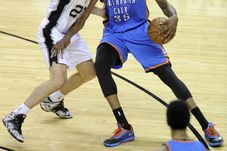 După două victorii extrem de clare obținute de Spurs în fața lui Thunder pe teren propriu, seria s-a mutat la Oklahoma City, unde Durant și Westbrook au echilibrat balanța, câștigând ambele meciuri. Programul a prevăzut disputarea meciului 5 la San Antonio, iar lucrurile au revenit la normal pentru texani. După un prim sfert echilibrat, în care cele două defensive au fost surprinse, Spurs a trecut la un line-up cu jucători mai scunzi, care a destabilizat total apărarea lui Thunder. Rezultatul? O victorie cât se poate de clară a echipei lui Gregg Popovich, scor 117-89, un nou semnal clar pentru Thunder că are nevoie de altceva într-un meci disputat în deplasare.
